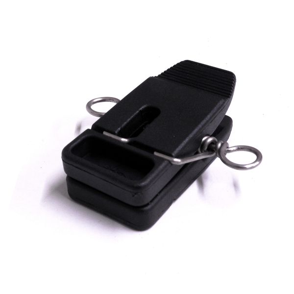 High impact black plastic with stainless steel eyes and spring.
