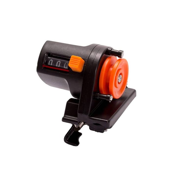 Fishing line counter for spooling can accurate to 999m with minimal line slippage. Each foot of fishing line is measured as it passes through the counter. 3-digit depth window shows reading in meters.
