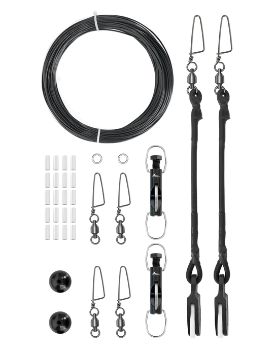 Complete Set for Immediate Use: This BLUEWING Outrigger Rigging Kit is a one-stop solution, featuring essential components like release clips, pulley, fishing line, snap, crimps, ball stops and rings. Ideal for those seeking a hassle-free setup, it meets all your rigging needs right out of the box.